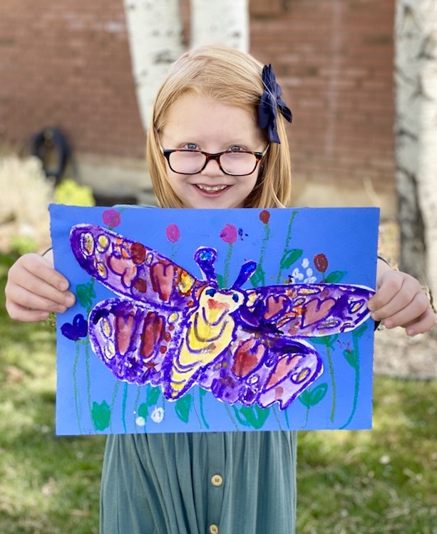 Next, students will follow a step-by-step guided drawing video with Laurie (GAP’s founder). They’ll learn about concepts such as symmetry, lines, composition, and more. These short videos are engaging and fun for kindergarten students, helping them grow in confidence and artistry.